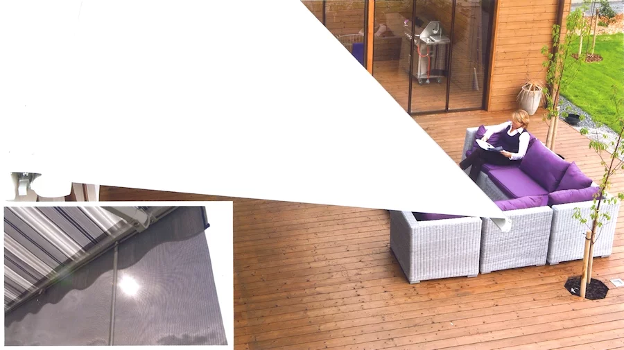 Smaragd går att få med rullgardinsfront som skapar en uterumskänsla samtidigt som man skyddas mot lågt gående sol.
